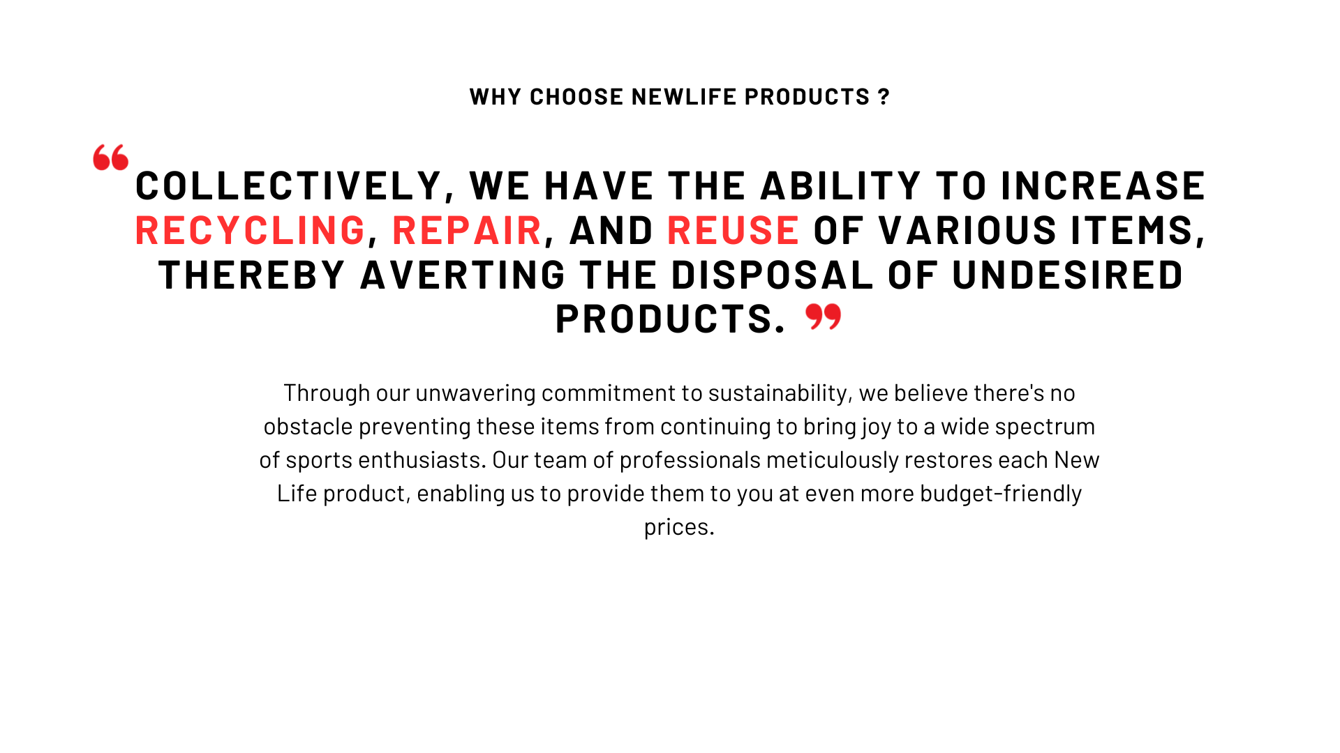 If you are looking for a sustainable way to Cycle? Our New Life Products are a great option for those looking to purchase high-quality gear at a fraction of the cost.
